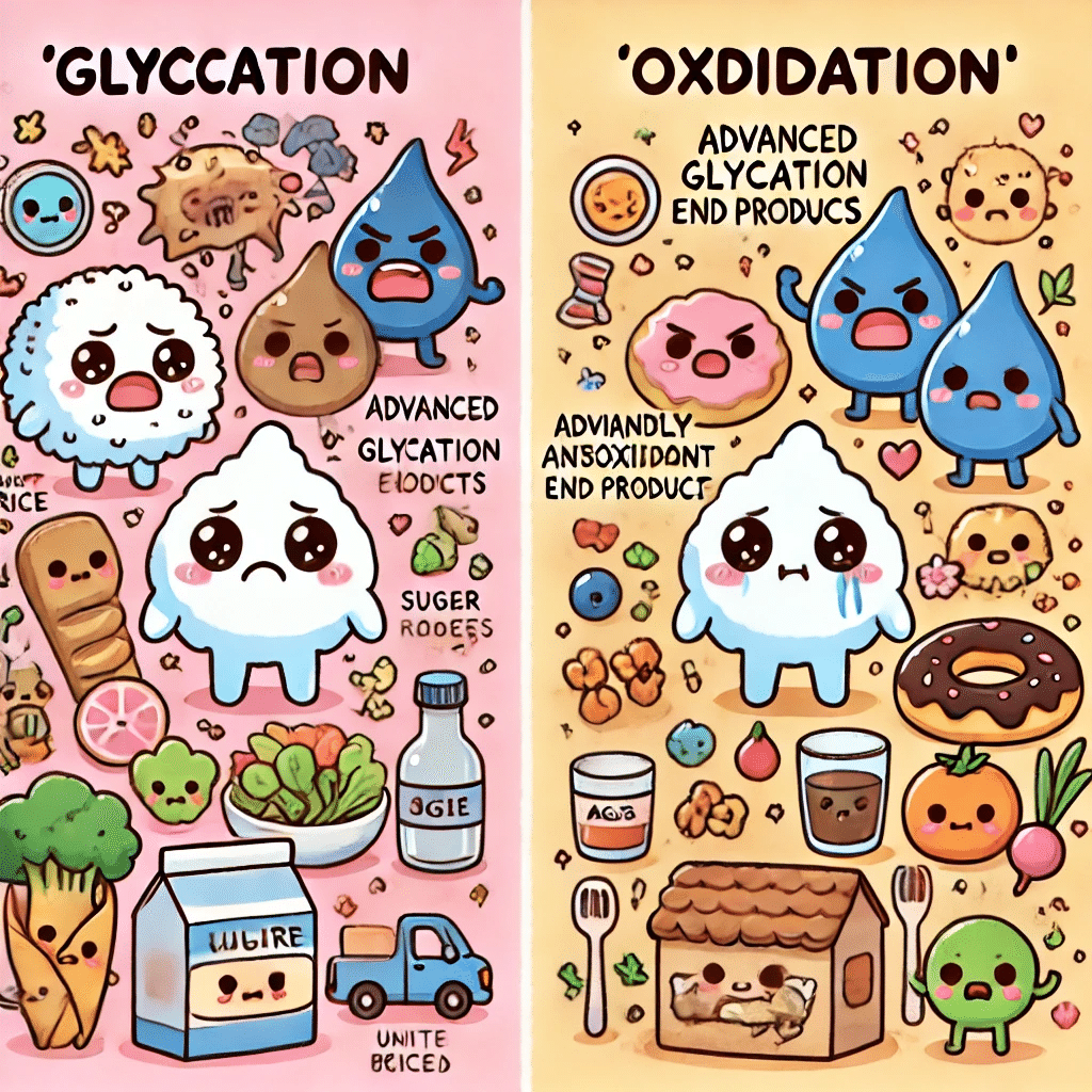 年齢とともに進む老化の大半は、体内で静かに起きる糖化(AGEs)と酸化が土台になっています。