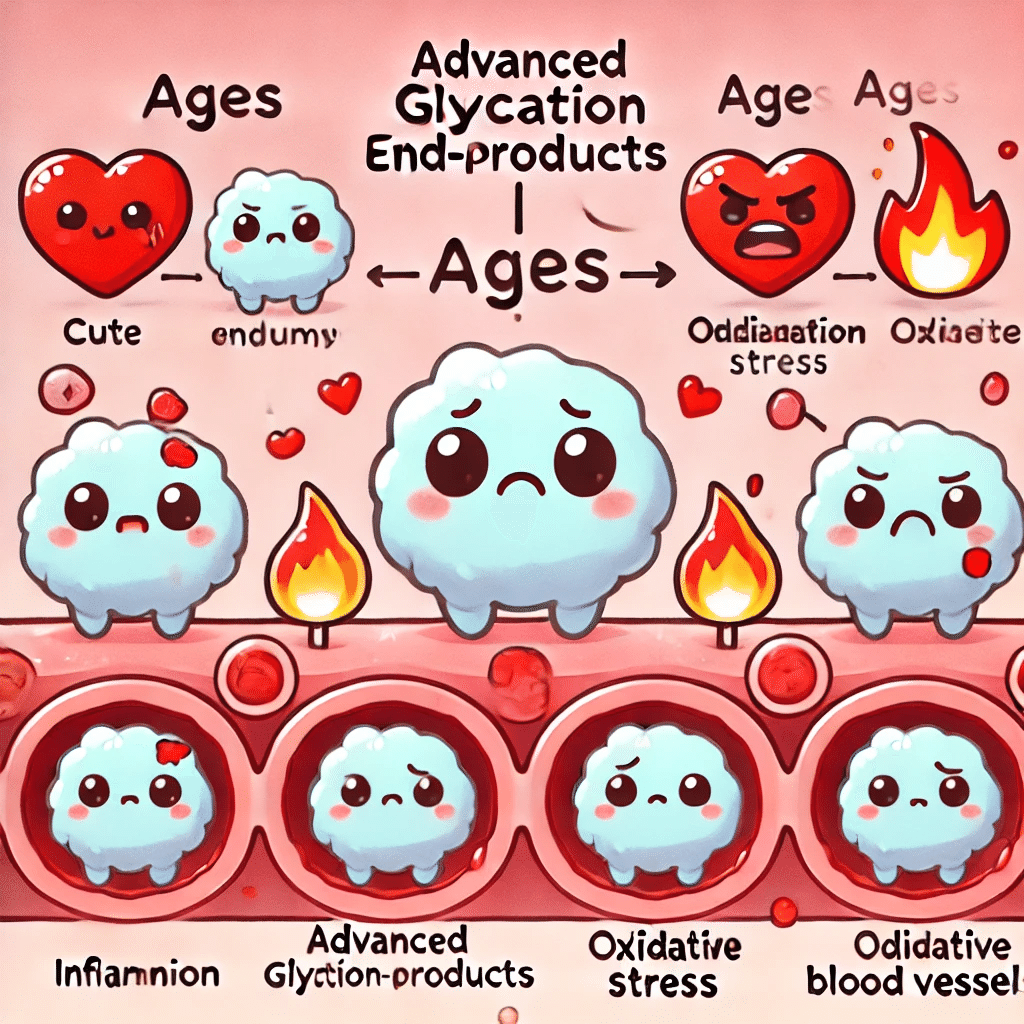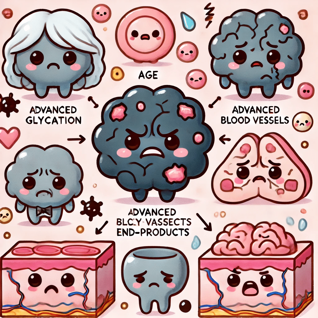 糖化の進行によって生じるAGEsは、血管や神経細胞の働きを鈍らせます。