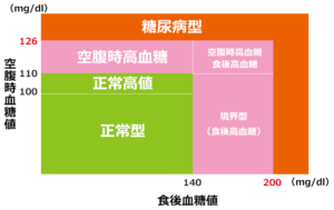 まず注目すべきは「空腹時血糖値」これは10時間以上食事をとっていない状態で測定された血糖値で、126mg/dL以上であれば糖尿病型と判定されます。