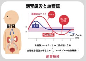 実は、ストレスが強いと血糖値は上昇しやすくなり、ストレスを感じると分泌されるホルモン「コルチゾール」が血糖を上げる働きを持っているためです。