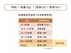 そこで意識したいのが、自分に合った食事量の把握、ひとつの目安として活用できるのが「BMI(体格指数)」です。