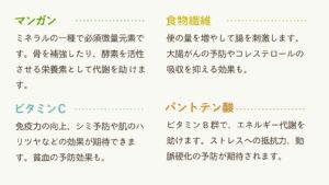 これらには、コレステロールの酸化を防ぎ、悪玉コレステロール(LDL)を減らす作用があることがわかっており、血圧の上昇を抑える働きもあり、生活習慣病の予防に役立ちます。
