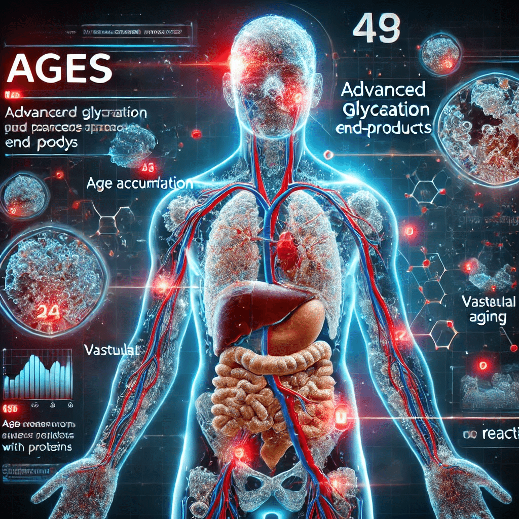 AGEs(終末糖化産物)は、血管の老化を加速させる大きな要因の一つになり、AGEsは、糖質が体内のタンパク質や脂質と結びつく「糖化反応」によって作られます。