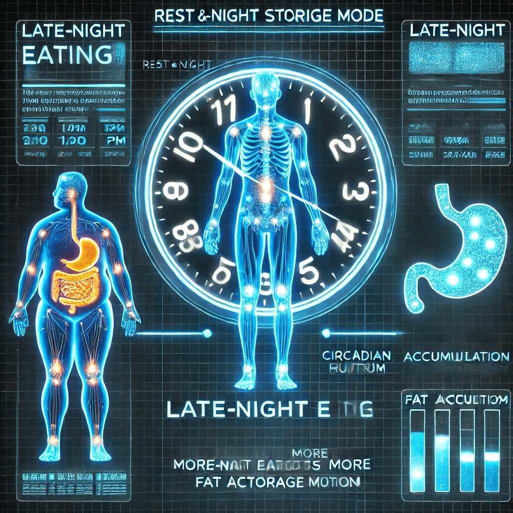 この時間帯は体が「休息と蓄積モード」に入るため、同じ量の食事でも日中より夜遅くに摂る方が脂肪になりやすいのです。