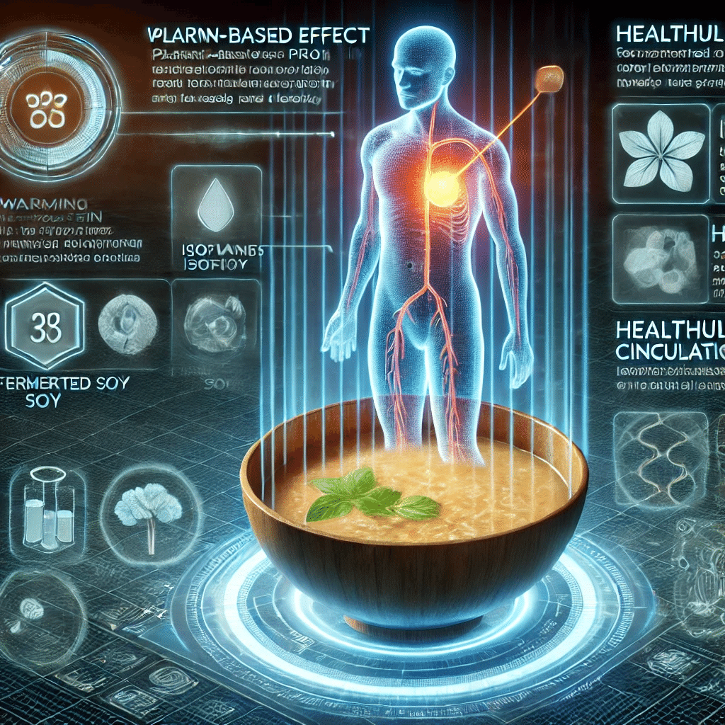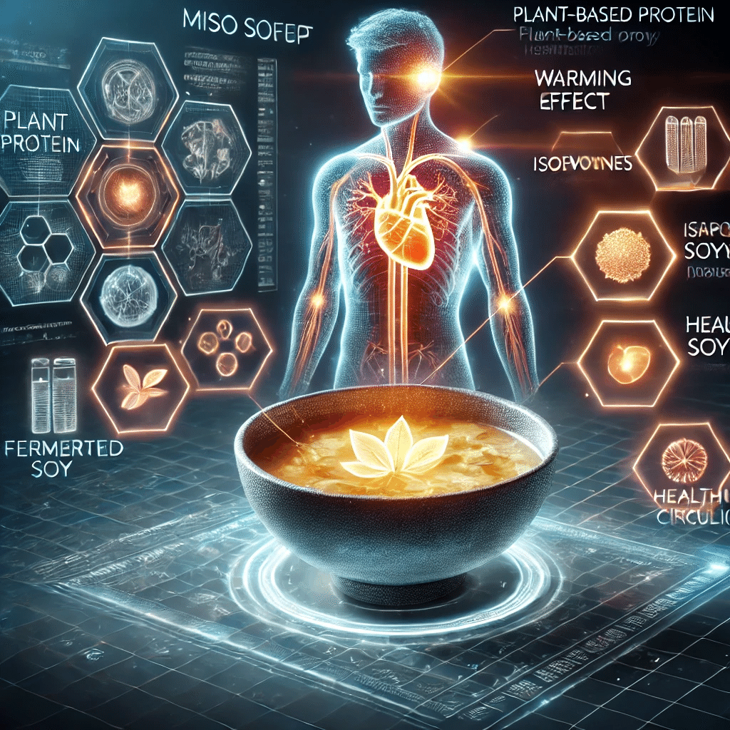 味噌汁はこの「温め効果」に加え、味噌自体の健康効果も得られ、味噌は大豆を発酵させた食品なので、植物性タンパク質やイソフラボン、サポニンなどの有効成分が含まれているのです。