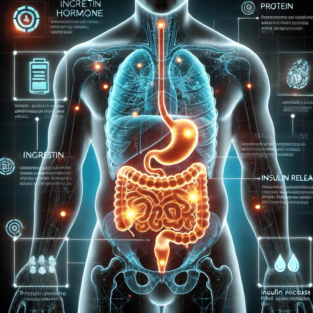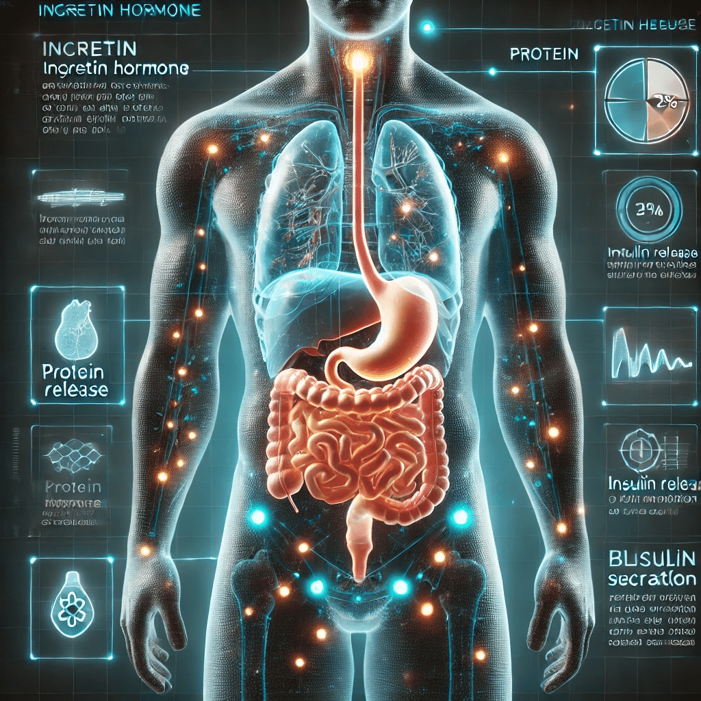 タンパク質を摂取すると、腸から「インクレチン」というホルモンが分泌されます。