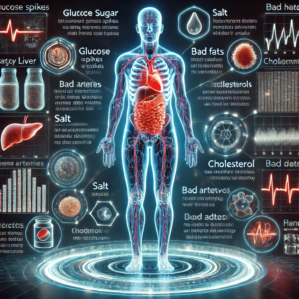 現代では糖質、塩分、悪い脂質、添加物などの過剰摂取が目立ち、その影響が蓄積していき、重病の引き金になっているのです。
