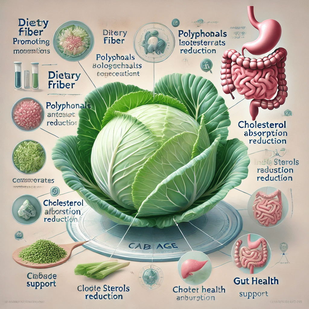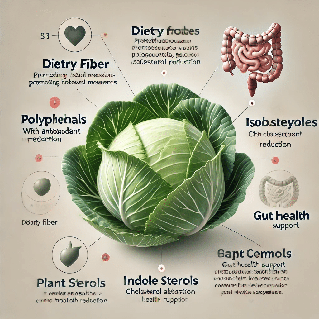 キャベツは食物繊維が豊富で、腸のぜん動運動を促進し、スムーズな排便を助ける働きがあり、キャベツに含まれる健康成分にも注目です。