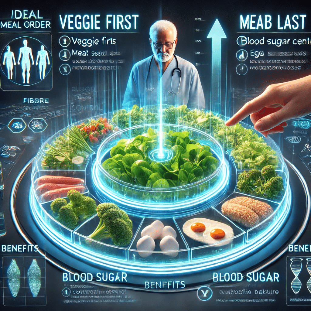 これは、主食であるご飯やパン、麺などの糖質を食べる前に、まず野菜やたんぱく質の食品を口にすることで、血糖値の急激な上昇を防げるという仕組みです。