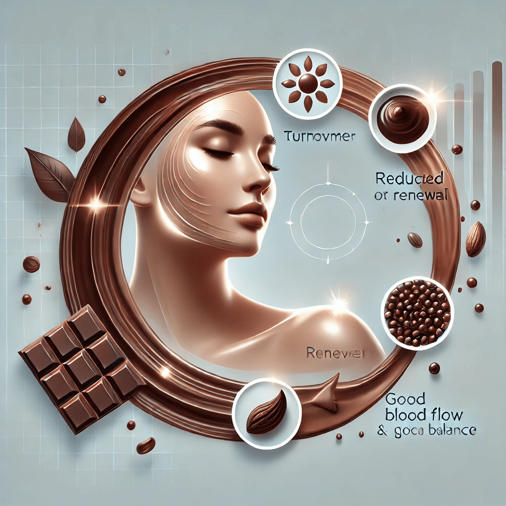 カカオには腸内環境を整える働きがあり、腸が元気になると血流も改善され、体全体の代謝が高まり、美しい肌づくりをサポート