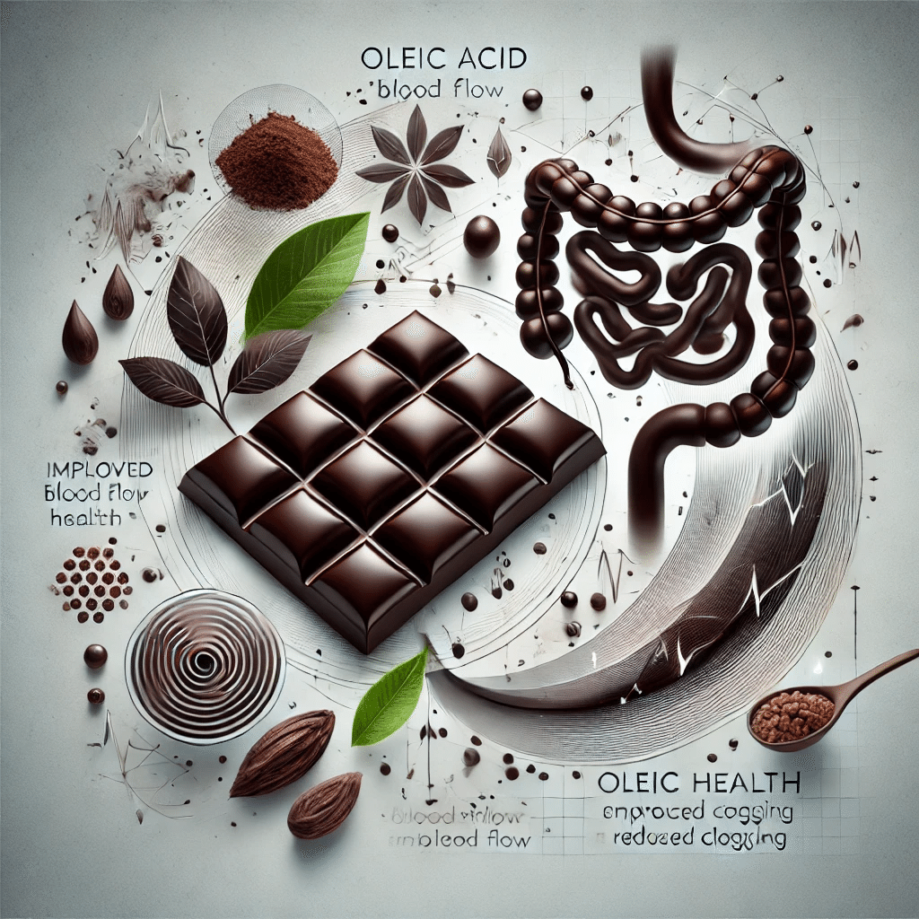 チョコレートは「食べると太る」というイメージが強いですが、カカオに含まれるオレイン酸は、オリーブオイルでおなじみの一価不飽和脂肪酸で、血液の流れを良くしてくれる働きがあります。