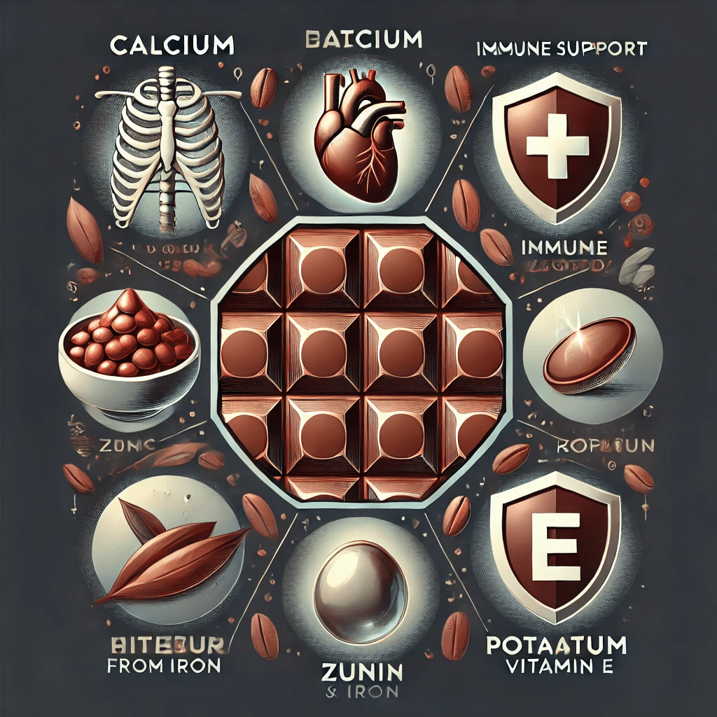 代表的なのがカカオポリフェノールで、マグネシウムや鉄、亜鉛といったミネラルも多く、エネルギー代謝を助けたり、血液の健康を維持する役割を果たします。