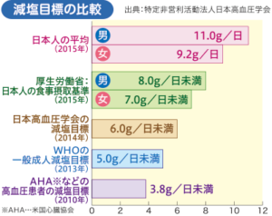 世界的に平均的な塩分摂取量はこれを大きく超えており、塩分過多が健康に与える影響は深刻で、塩分を減らすためには、食事の中で意識的に塩分を控える工夫が必要です。
