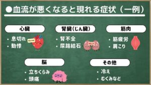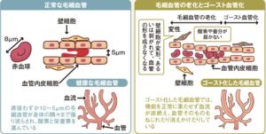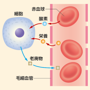 静脈や毛細血管も血液の流れが悪くなり、酸素や栄養が細胞に届きにくくなるため、体の機能が低下します。