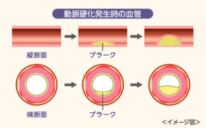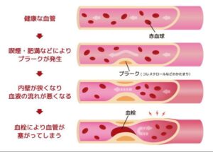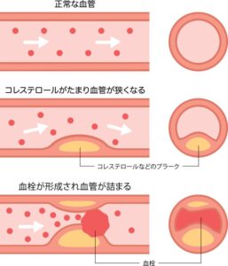 動脈硬化が進行すると、血管内に血栓ができやすくなり、それが詰まると心筋梗塞や脳梗塞などの重篤な疾患を引き起こす原因となります。