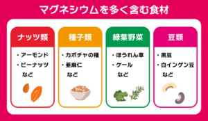 これにより、糖尿病のリスクが高まり、血圧への影響も悪化するので、マグネシウムを豊富に含む食品(ナッツ、豆類、緑葉野菜など)を積極的に摂取し、不足を防ぐことが健康管理に重要です。