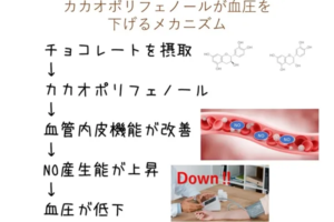 高カカオチョコレートの特徴は、糖分の量が少なく、カカオポリフェノールやエピカテキンが注目されており、血糖値の上昇を抑制し、血管の健康を守る働きがあります。