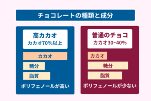 一般的なチョコレートと比べて、高カカオチョコレートは健康に良い影響を与える成分が多く含まれているため、健康維持や病気予防に役立ちます。