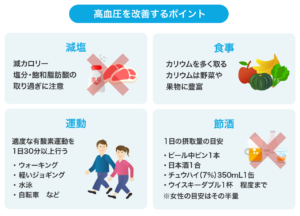 塩分の摂取制限や、カリウムやマグネシウムなどの血圧を安定させる栄養素を意識的に摂取することが大切です。