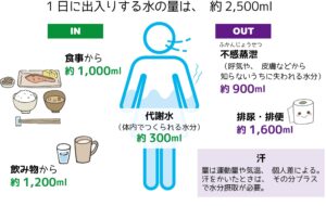 体内の水分量が足りないと、血液が濃くなり、血圧が上昇しやすくなるので、1日1.5リットルの水を飲むことで、血液の流れがスムーズになり、血圧の安定に寄与します。