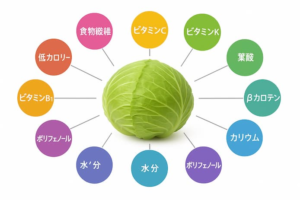 また、キャベツの食物繊維は満腹感を与え、食べ過ぎを防ぐ効果があります。