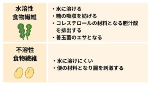 食物繊維には水溶性と不溶性の2種類があり、どちらも重要な役割を果たし、水溶性食物繊維はコレステロール値を下げ、不溶性食物繊維は便の老廃物を排出し、腸内を健康に保ちます。