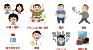 また、肥満や喫煙も高血圧の大きなリスク因子、肥満は血圧を上げる原因となり、喫煙は血管を収縮させるため、両者は血圧をコントロールする上で避けるべき習慣です。