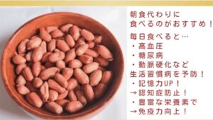 皮付きピーナッツを1日20粒ほど食べることは、高血圧の予防や老化防止に効果的です。