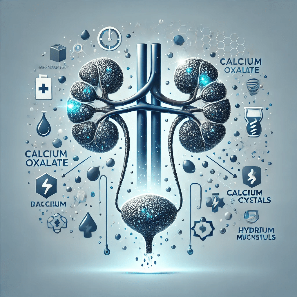 結石の多くはカルシウムを含むもので、体内でカルシウムとリン酸やシュウ酸が過剰になると、尿の中で結晶化して石を作りやすくなります。