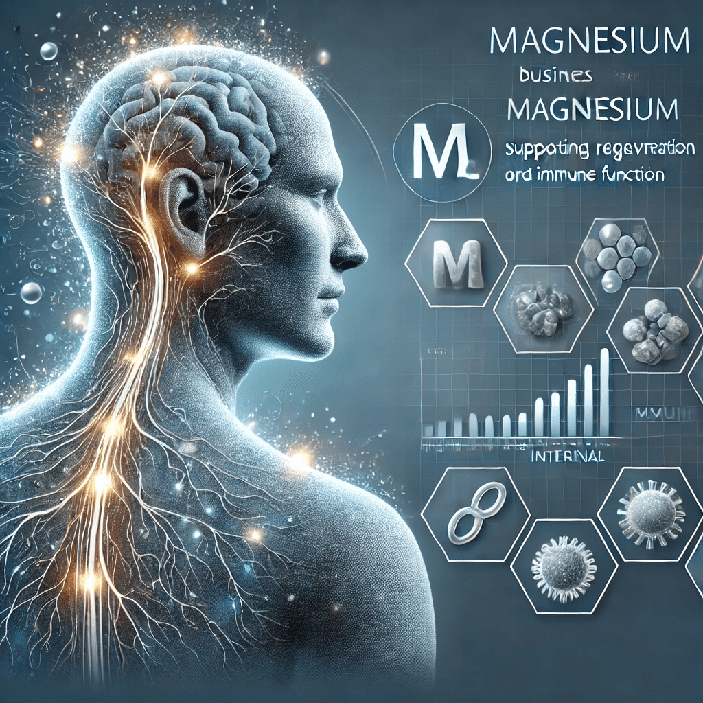 ここでマグネシウムが働き、体内で300以上の酵素をサポートするミネラルで、細胞の新陳代謝や神経の働き、炎症を鎮める作用に深く関わっています。