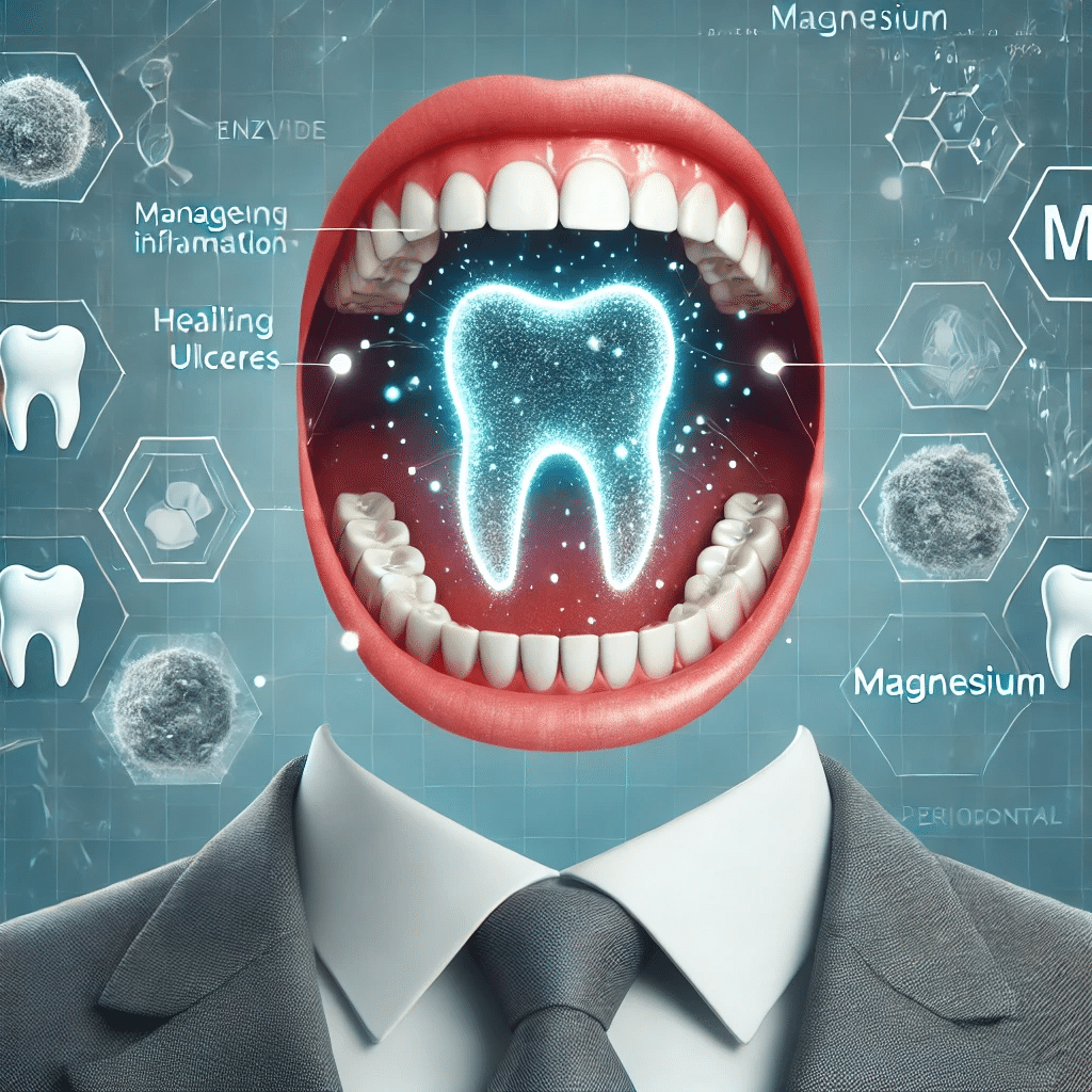また、歯周病は口の中の細菌バランスと免疫の働きが密接に関係し、マグネシウムはカルシウムとともに骨や歯を丈夫に保つだけでなく、体内の炎症を和らげる役割もあるため、歯ぐきの健康維持に役立ちます。