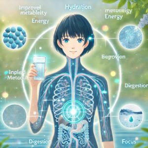 このように、水は血液をはじめ全身に欠かせない役割を担っており、十分な水分補給がなければ代謝も健康も維持できないのです。