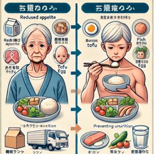 年齢を重ねると、食欲が落ちて食べる量が少なくなることは自然な変化ですが、食事量が減ると必要な栄養が不足し、低栄養状態に陥りやすくなります。