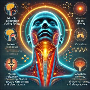 その結果、空気の通り道が振動し、いびきが大きくなりやすく、疲れていると筋肉が緩み、気道の閉塞はさらに強まり、無呼吸を伴うこともあります。