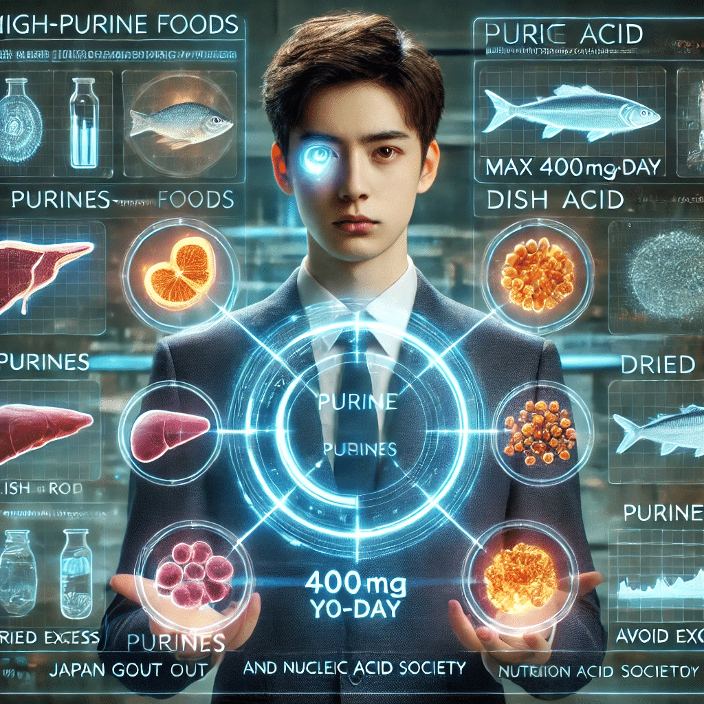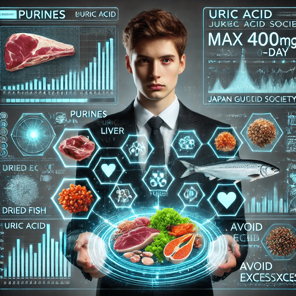 プリン体は1日400mgを目安に、特に動物性内臓の摂り過ぎを避け、調理法も茹でる・蒸すなどで減らしましょう。