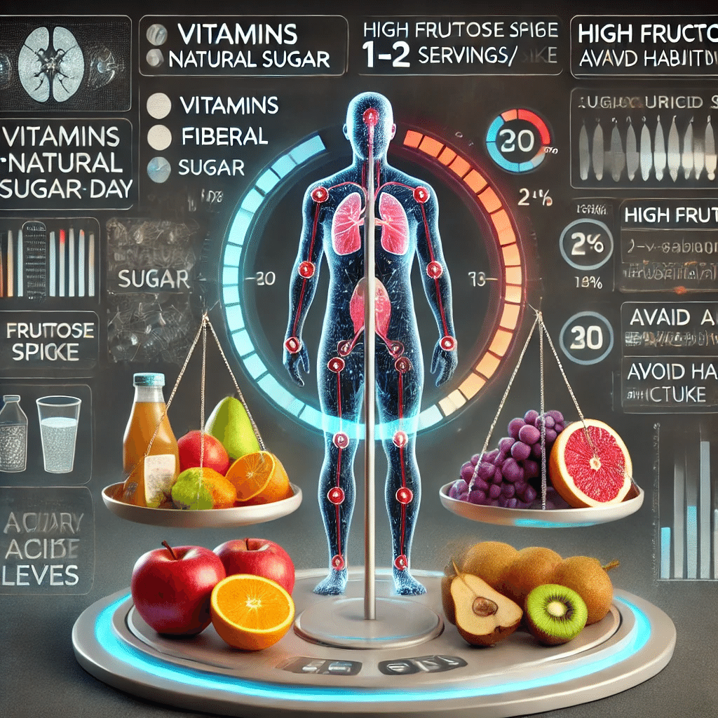痛風や高尿酸血症の予防には、果糖の摂取量を意識してコントロールしていき、果物はビタミンや食物繊維が豊富で健康に役立ちますが、一度に大量に食べず、1日1〜2人分を目安にしていきましょう。