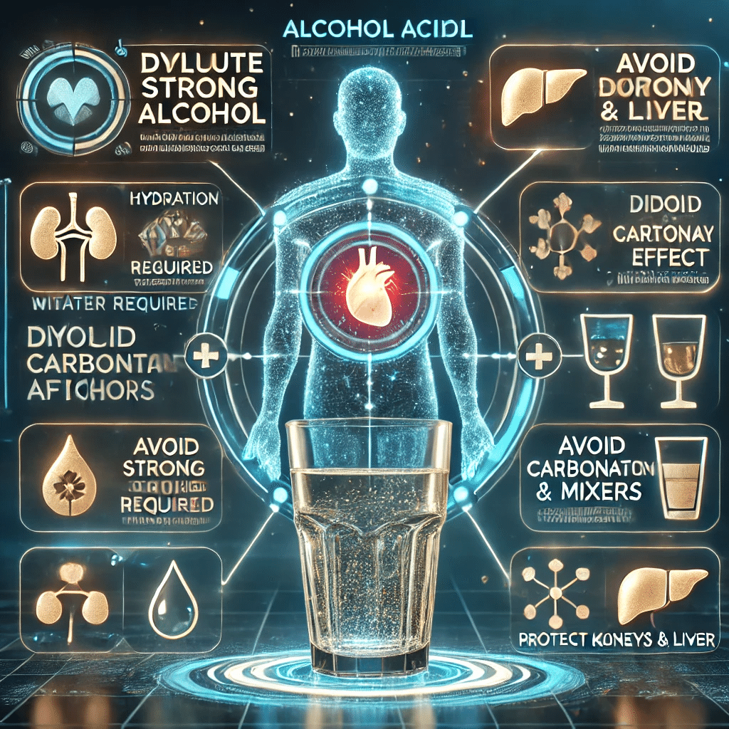 胃や腸に直接アルコールが吸収され、血中アルコール濃度が急上昇しやすく、必ず食事と一緒に飲むよう心がけましょう。