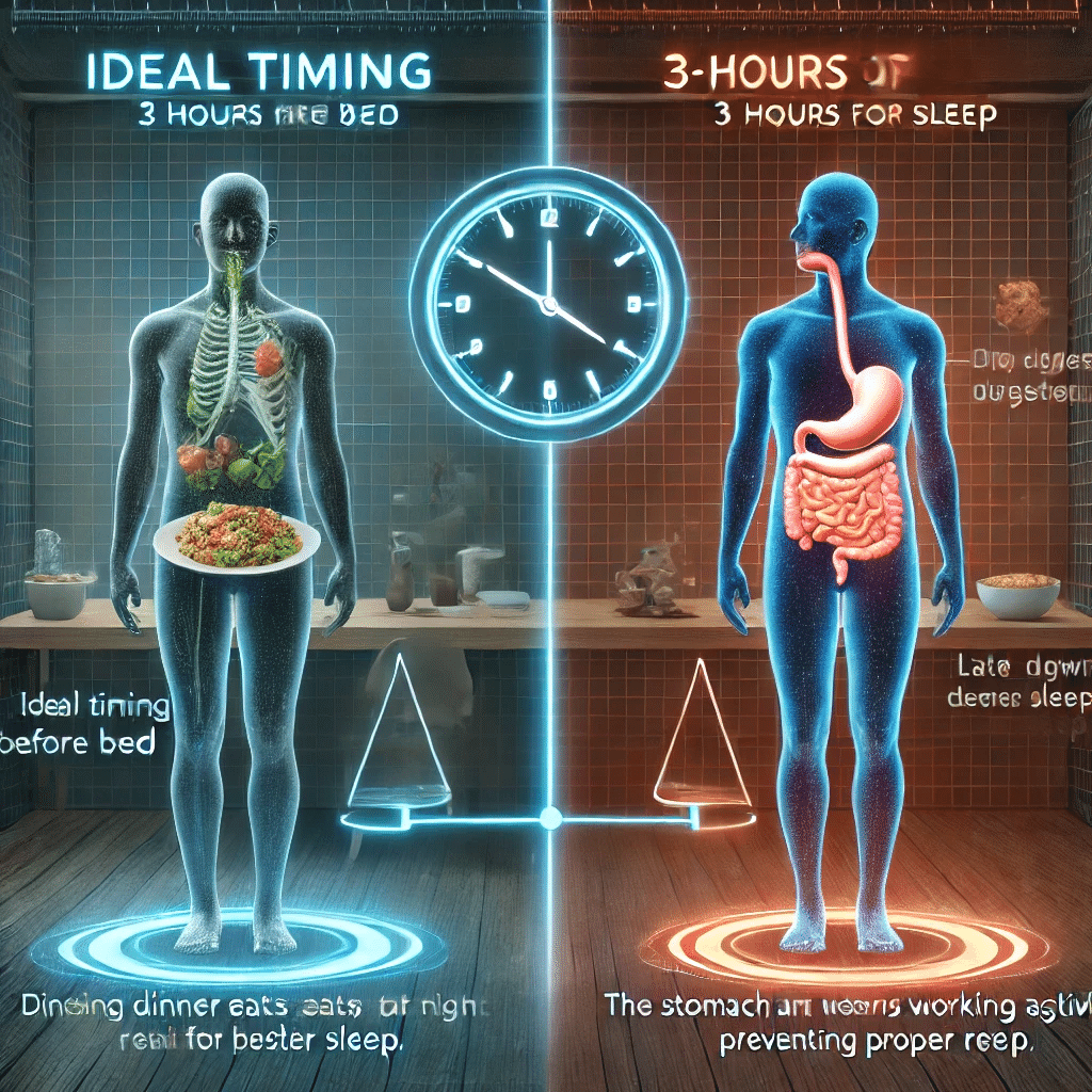 夕食は就寝の3時間前までに済ませ、胃腸を休ませることで深い眠りにつながり、夜遅い食事は血糖値の乱高下を招き、浅い睡眠や中途覚醒の原因になります。