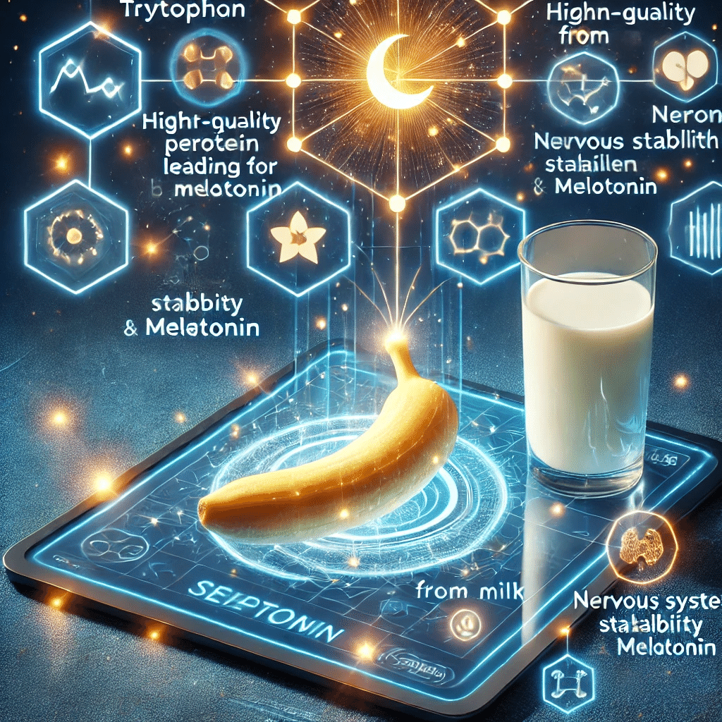 そこに牛乳を加えることで、良質なタンパク質やカルシウムも摂取でき、神経の安定や骨の健康にもつながり、牛乳にもトリプトファンが含まれているため、バナナとの相乗効果でセロトニンの生成が一層スムーズになります。