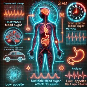 まず影響が現れやすいのが睡眠で、血糖値が不安定になると眠りが浅くなり、夜中に目が覚めやすくなったり、ぐっすり眠れないまま朝を迎えてしまいます。