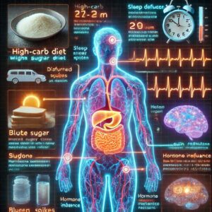 そして「睡眠不足」、睡眠不足はホルモンバランスを乱し、インスリン抵抗性を強めてしまうのです。