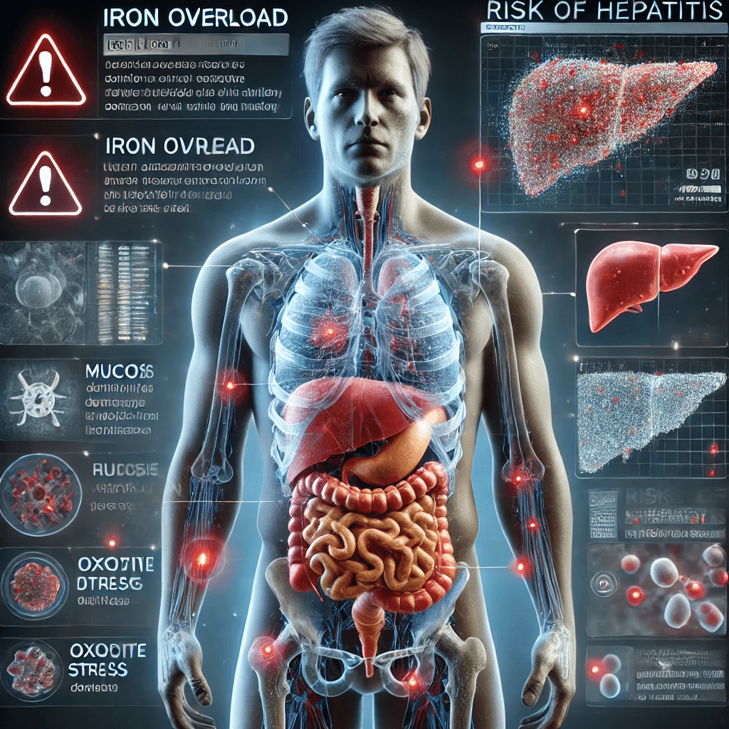 例えば、肝臓に鉄が蓄積すると鉄過剰による肝炎を起こすことがあり、慢性的なダメージにつながります。