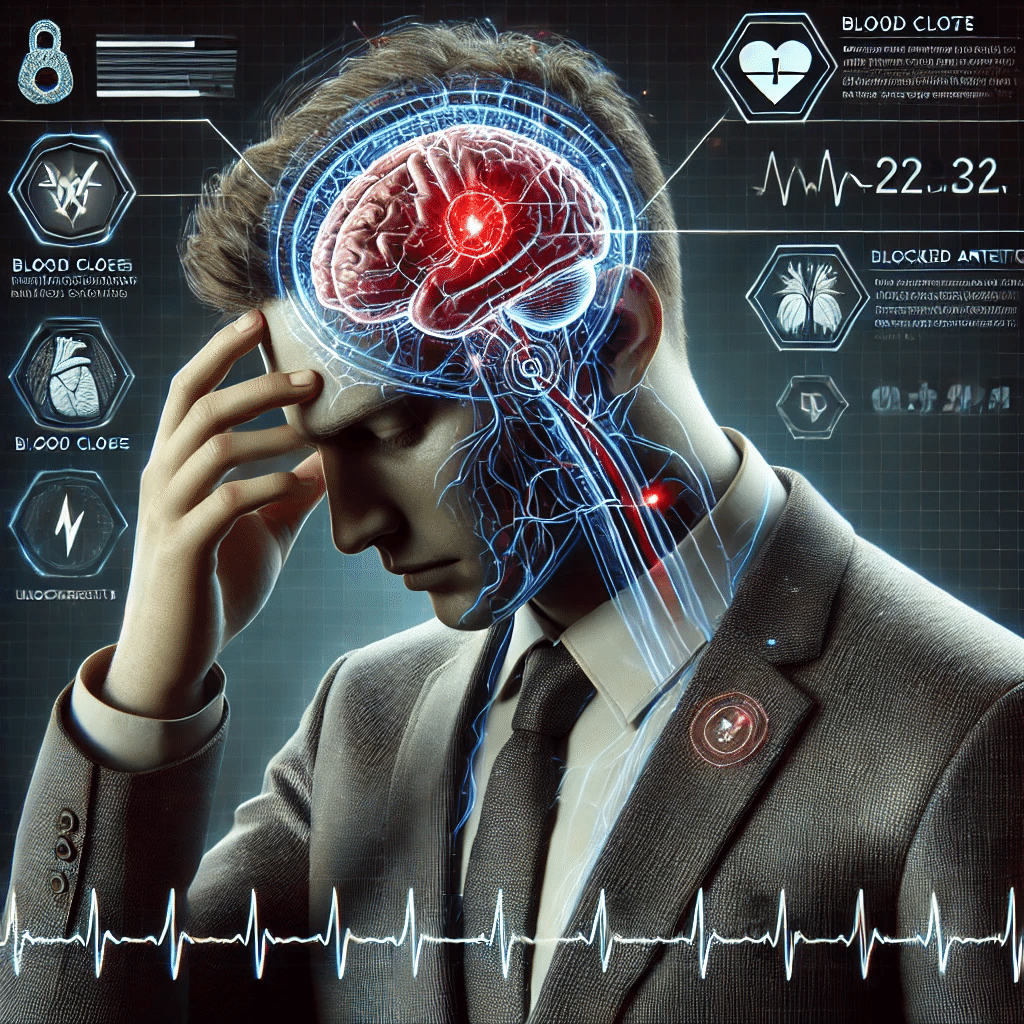 同じく血栓が原因で発生するのが「脳卒中」、脳卒中には「脳梗塞」「脳出血」「くも膜下出血」があり、なかでも脳梗塞は、脳へ血液を送る血管が血栓によって詰まり、脳の一部が酸素不足となって壊死する疾患です。