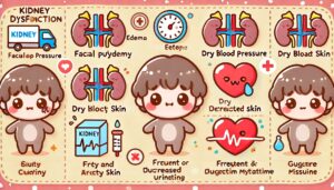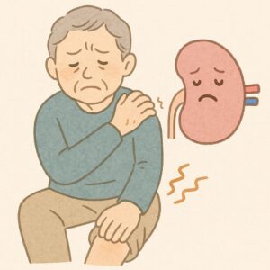 腎機能がさらに低下すると、老廃物が血液や皮膚に蓄積し、かゆみ、湿疹、肌の乾燥などの皮膚トラブルを引き起こします。