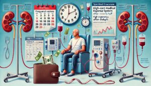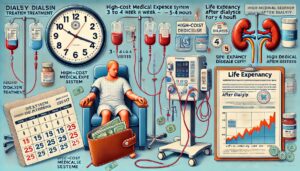 更に、透析は週に3〜4回は病院に通い、1回に4〜5時間の治療を行う必要があり、ほぼ半日病院で過ごし、透析後も疲労で動けないことも多いのです。
