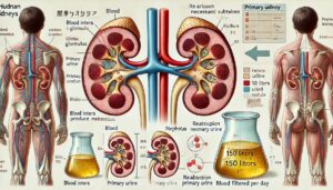 原尿の大部分は、体に必要な成分として再吸収され、最終的には1〜2リットルの尿として排泄され、このことによって血液中の老廃物や不要な塩分、余分な水分が取り除かれ、体内の水分量や電解質のバランスが保たれます。