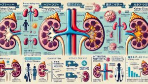 腎臓病には腎臓自体が原因の原発性、糖尿病や高血圧などから波及する続発性、そして急性・慢性といった進行スピードの違いがあり、どのタイプも早期発見と適切な対策が鍵になります。
